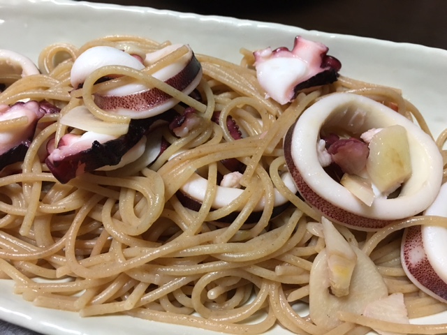 タコとイカの全粒粉ペペロンチーノ