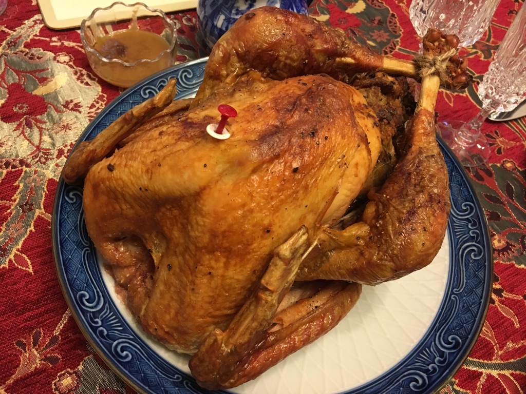 (↑今年は二人だけで小さめのターキーを焼くことに。)